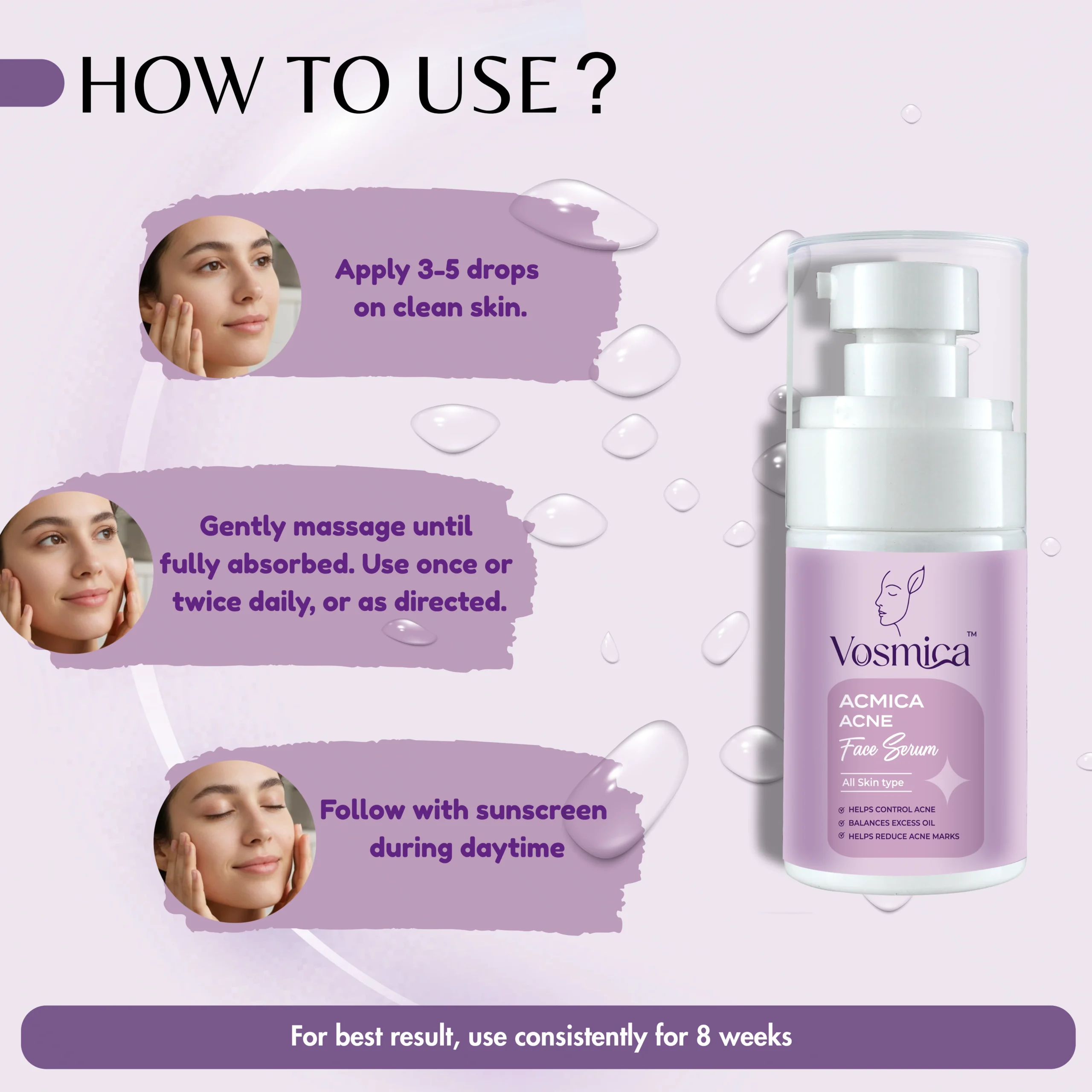 2. Apply a few drops of Acmica serum to the face.