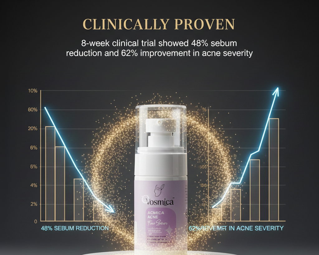 8-week clinical trial showed 48% sebum reduction and 62% improvement in acne severity.