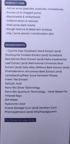 Good for daily use and doesn’t irritate the skin. Acne reduce hua hai but slowly. Agar patience hai to acha product hai.