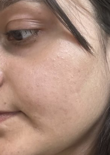 Skin pe chhote bumps the, wo kaafi reduce hue. Texture better lagta hai