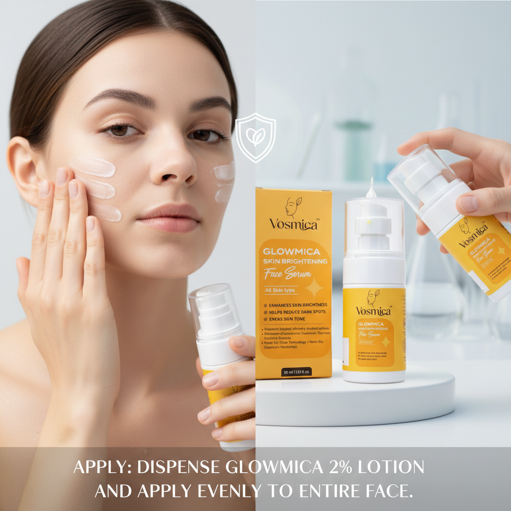 Dispense Glowmica 2% lotion and apply evenly to the entire face.